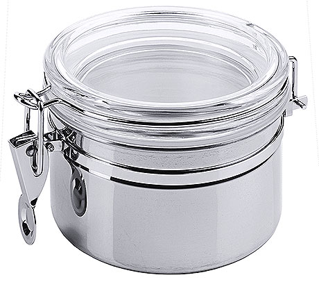 из в-к. стали 18/10, ярко блестящая, с плотно закрывающейся крышкой из акрила,тяжелая, толщ.стенок 0,6 мм