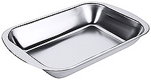 из в-к. стали 18/10, матовая,тяжелая, с округленными углами. Одинаково хорошо подходит для мяса и запеканок